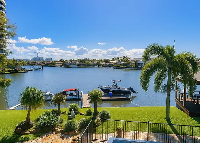 Nur 4 km vom Sea World entfernt, lädt die Villa Large Waterfront Property With Spectacular Views & Sunsets Gold Coast Gäste zum Entspannen auf einer Sonnenterrasse ein. Diese Villa in Gold Coast befindet sich am Strand und bietet einen Swimmingpool sowie Blick auf die Seen.